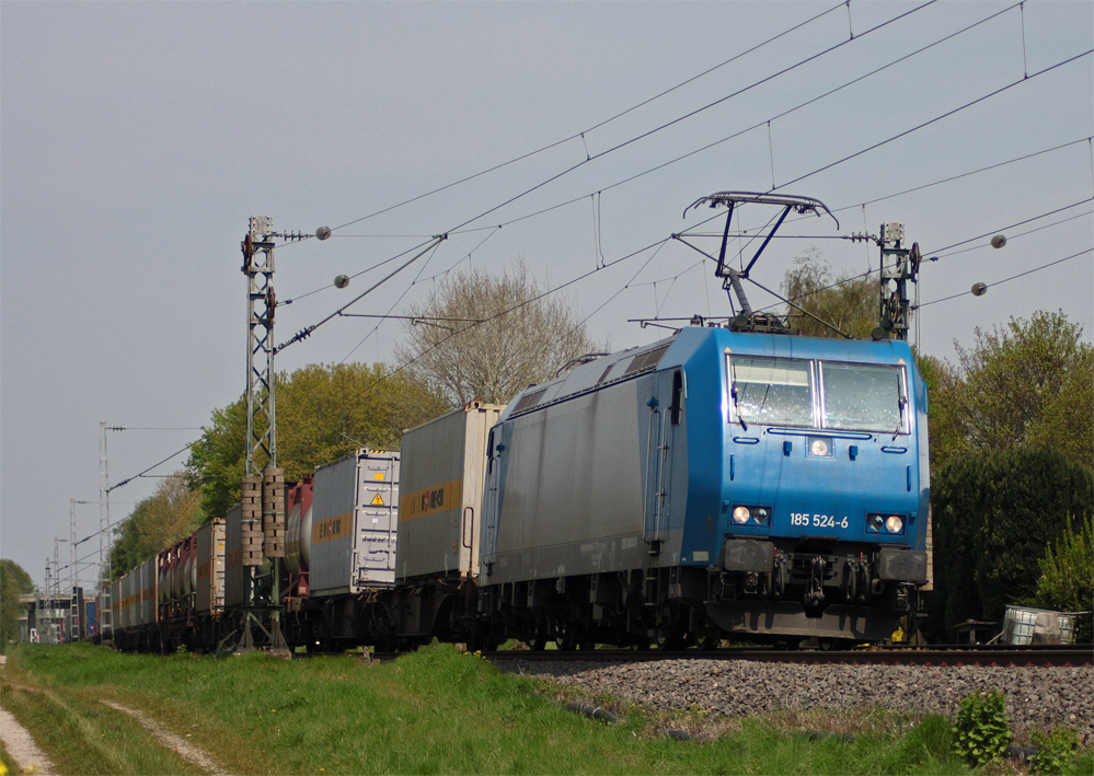 185 524-6 mit einem Umleiter nach Aachen wegen einer Streckensperrung bei Köln am Km 25.6 bei Geilenkirchen, 28.4.10