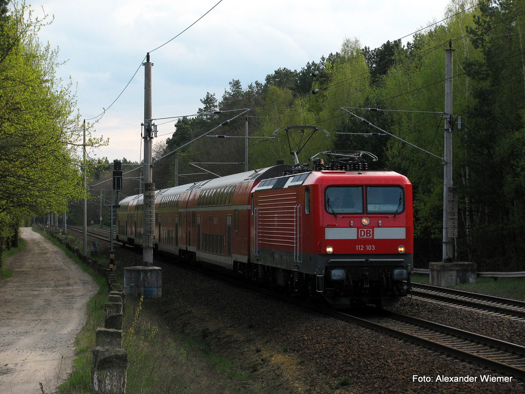 Es war die relativ frisch revidierte 112 103, die durch den Frühling des 27.04. ihren RE 2 pünktlich nach Rathenow zog und nun die Strecke für ein Jahr nicht mehr sehen wird.
