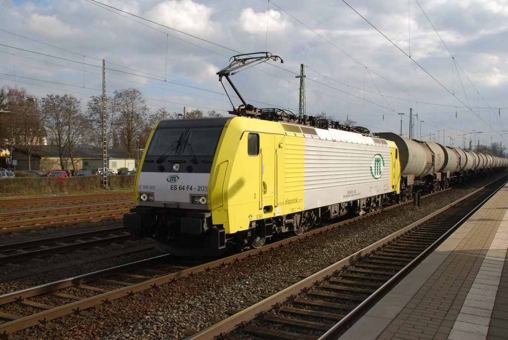 Hier konnte ich mir mit den Bildern richtig Zeit lassen. E 189-203 als ES64 F4-203 der ITL in wunderschönem Geld-Silber-Farbkleid. Dahinter reichlich Kesselwagen. Der Lokführer hatte sein Gespann hier gestoppt um einen eiligen ICE durchfahren zu lassen. Die kurze Pause wurde genutzt um sich mit etwas Futter aus dem Bahnhofsbistro zu versorgen. Für einen kurzen Plausch war auch noch Zeit. Diesel aus Tschechien hieß der Auftrag an diesem Tag. Kurz vor Abfahrt kam noch eine zweite 189er mit selbem Ziel durchgefahren.