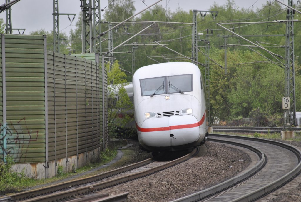 Der ICE Mönchengladbach-Berlin Ostbahnhof zeigt sich hier im Halte Punkt Büttgen in wenigen Minuten erreicht er Neuss Hbf, dieses Mal ist es der 402 024-4. Sonntag 9.5.2010