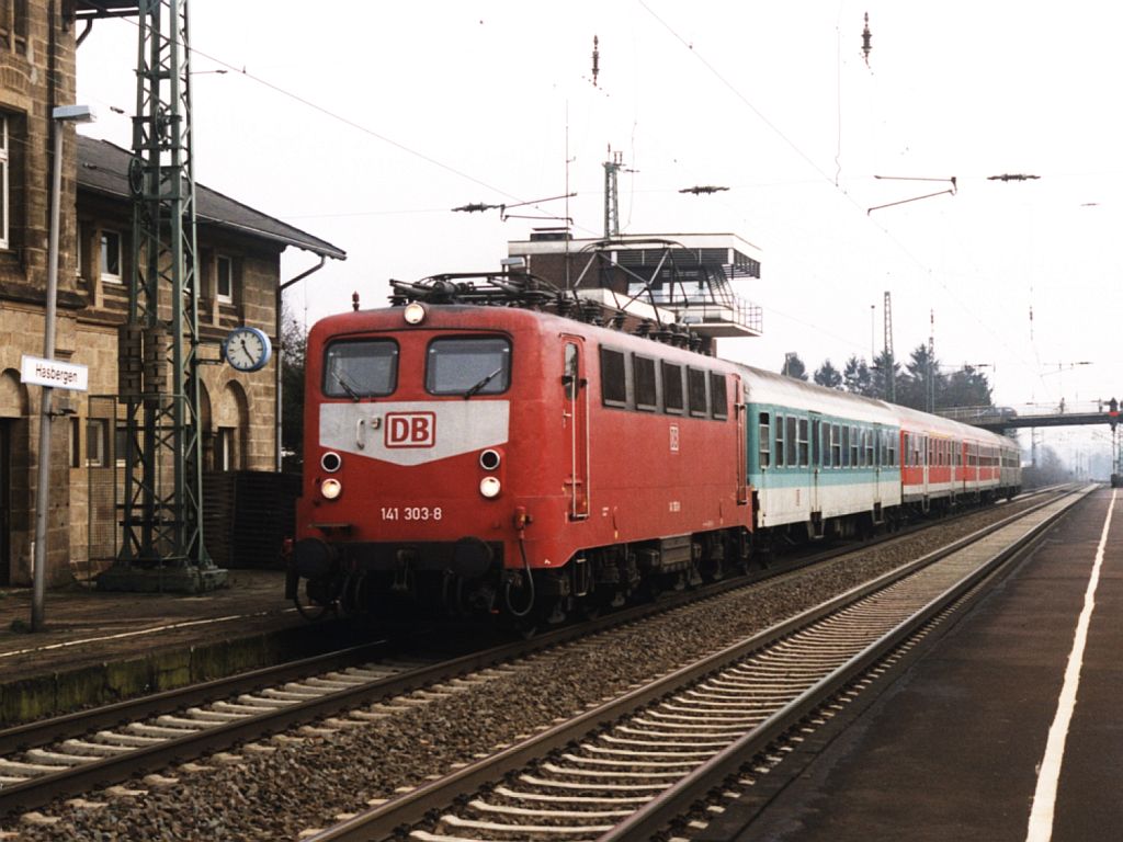 141 303-8 mit Teutobahn RB 66 12818 Osnabrück-Münster auf Bahnhof Hasbergen am 05-02-2000. Bild und scan: Date Jan de Vries.