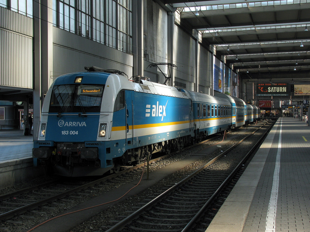 183 004 als Träger meines Namens gehörte natürlich auch fotografiert am 19.10. im Münchener Hbf. Die Garnituren der "Alex"-Züge sind aber auch lustig mit den Dostos in der Mitte.