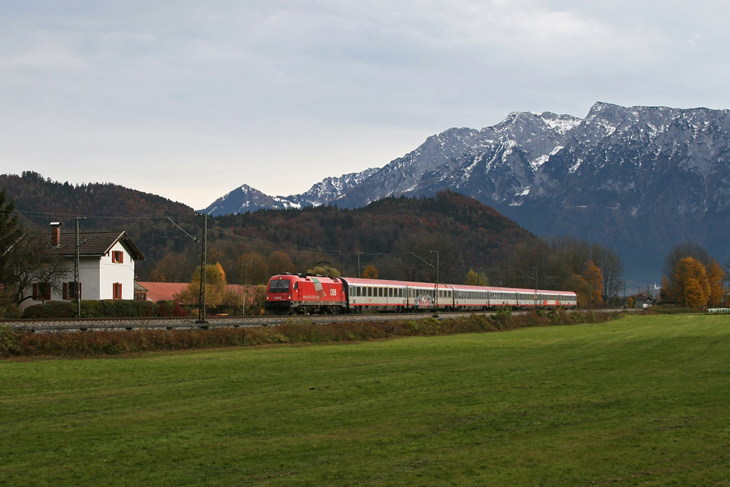 Eine 1216 mit EC 88 am 31.10.2010 bei Niederaudorf.