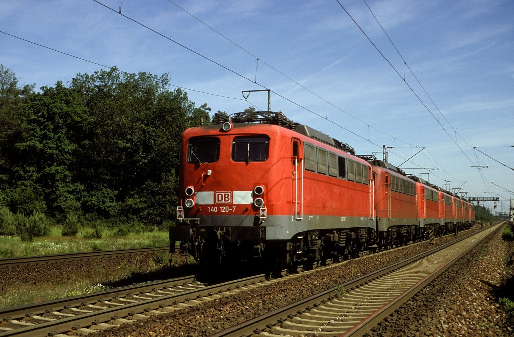 140 857-4 und 140 804-6 mit Güterzug auf Bremen Hauptbahnhof am 16-9-2000. Bild und scan: Date Jan de Vries.