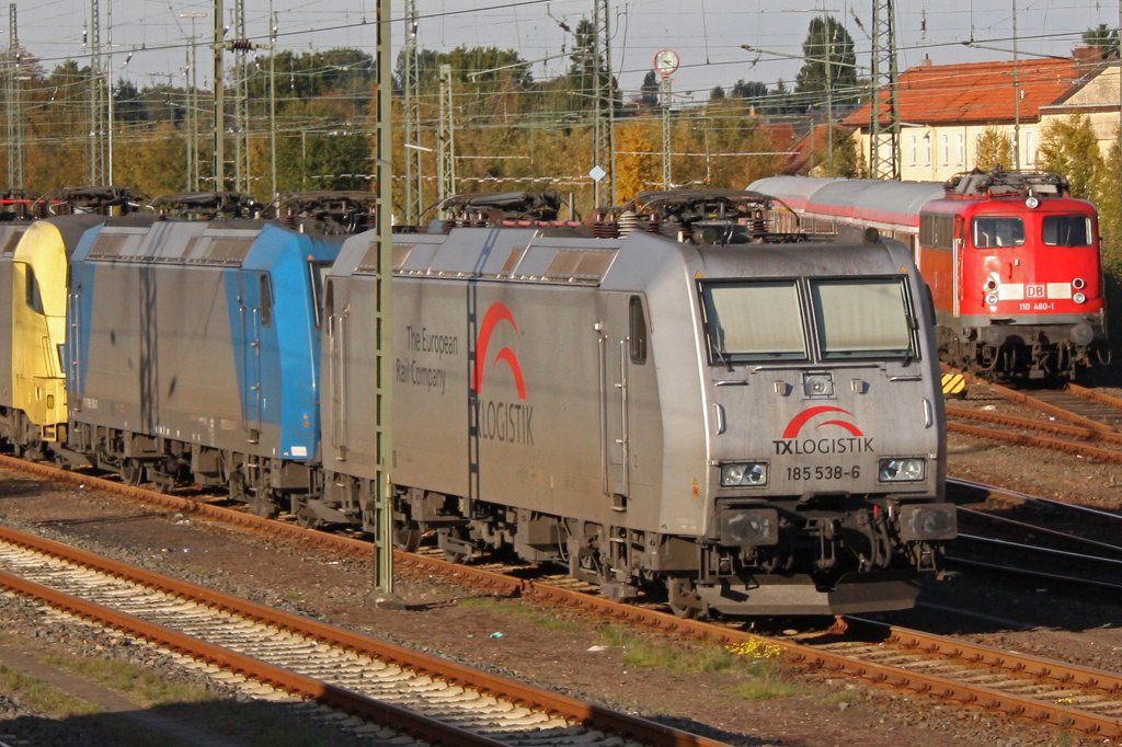 TXL 185 538 und eine 110 sonnen sich am 17.10.10 in Bremerhaven-Lehe