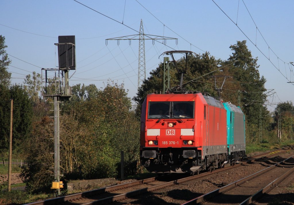 Und auch fast an der Grenze werden wir sie nicht los... 185 250 mit einem VW Zug gen Österreich am 09.10.10 in Passau.