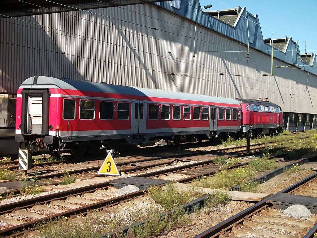 218 mit einem Wagen im Chemnitzer Hbf. 09.10.2010