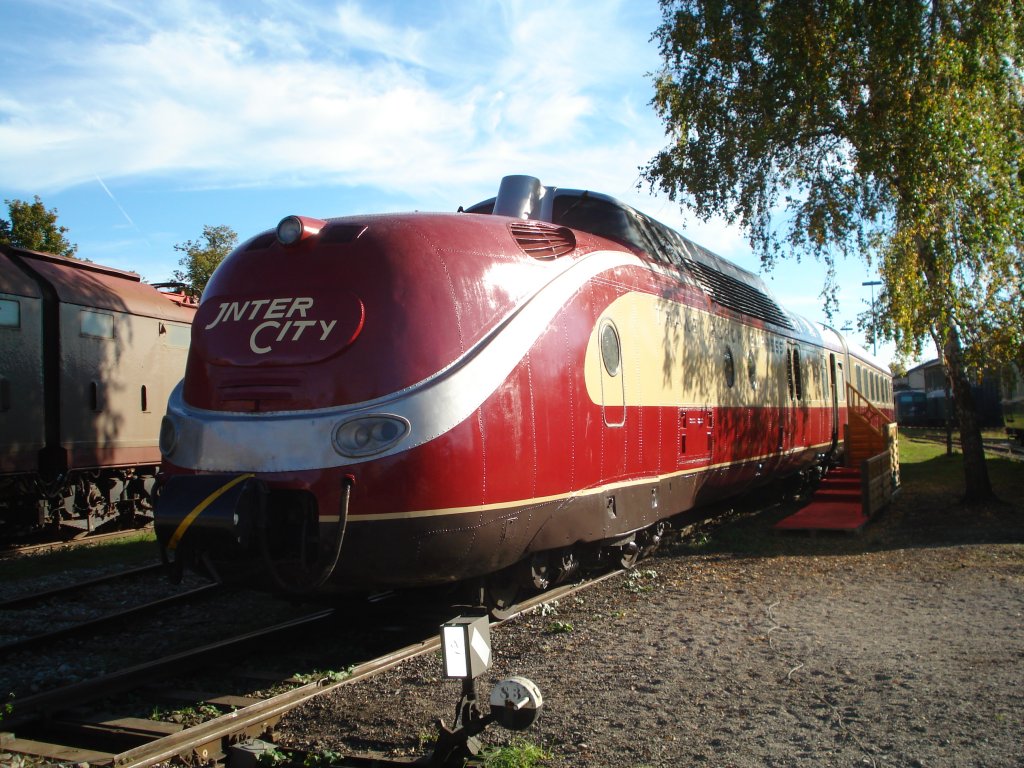 Ein "TEE"-VT 11.5-Triebkopf vor einem "Bügeleisen" der CFL im Bahnpark Augsburg, 03.10.10.