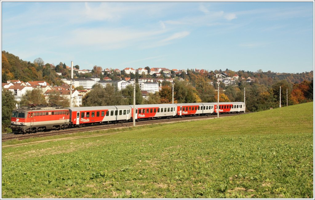 1042.041 mit IC 518 von Graz nach Salzburg, aufgenommen bei Mautern am 10.10.2010.