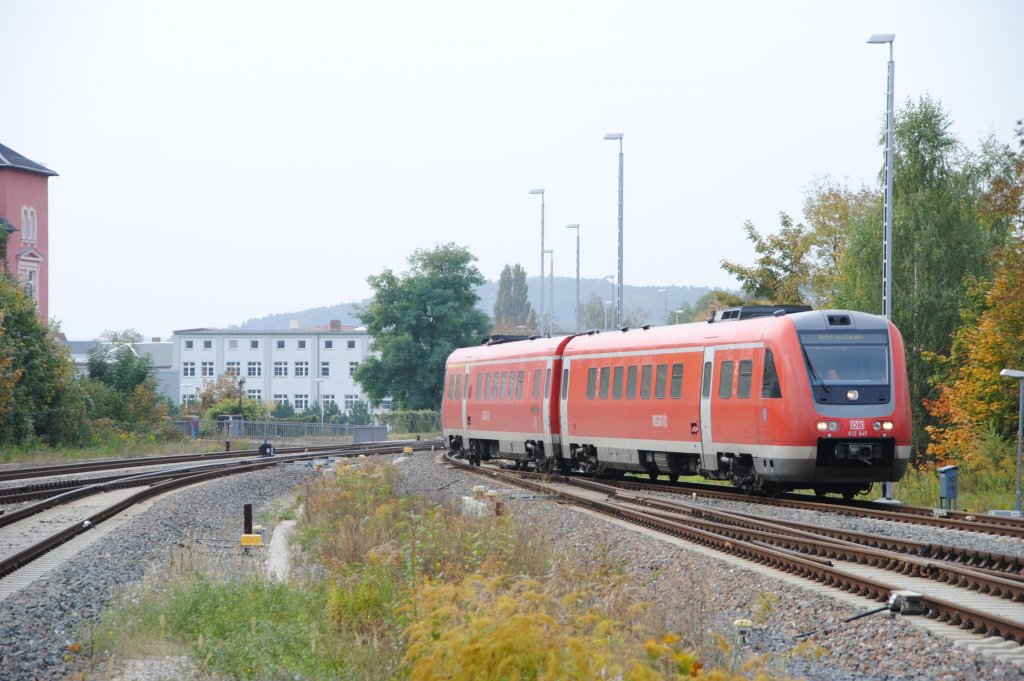 Am 10.10.10 brachte 41 1144-9(ersatzweise für 50 3708)den Sonderzug aus Blankenburg zum Saisonausklang des TEV nach Weimar. Hier erreicht er den Hbf.Halle/Saale.