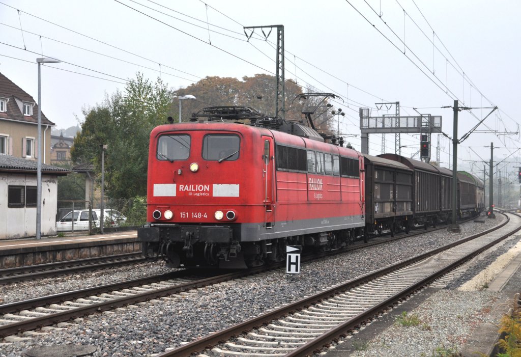 151 148 ist mit einem gem.GZ am 14.10.2010 Richtung Kornwestheim unterwegs.