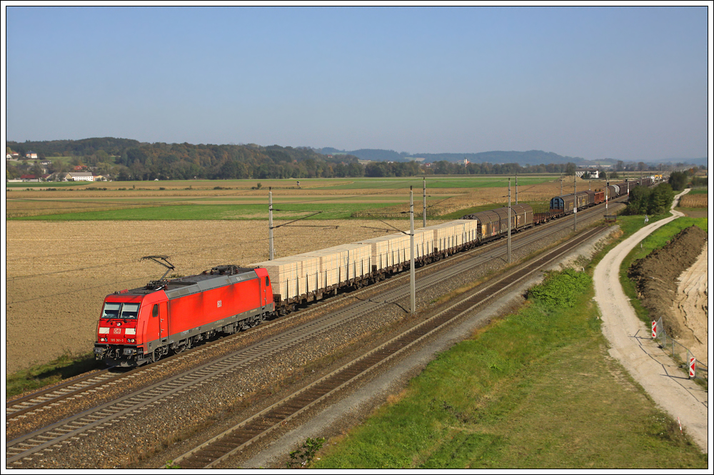 185.361 bespannte am 10.10.2010 den DG 45910 nach Nürnberg und wurde unmittelbar vor Amstetten abgelichtet. Dieser herrliche Güterzug inkl. 185 wird uns auch im Fahrplanjahr 2010/2011 erhalten bleiben.