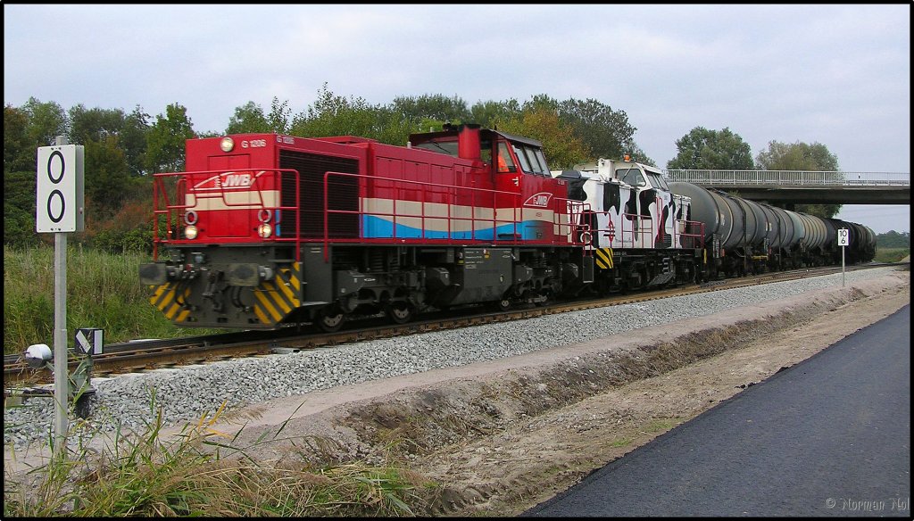 Die G 1206 der Jade-Weser-Bahn im Portrait auf der Vorstellgruppe Wilhelmshavener Raffinerie. 12/10/10
