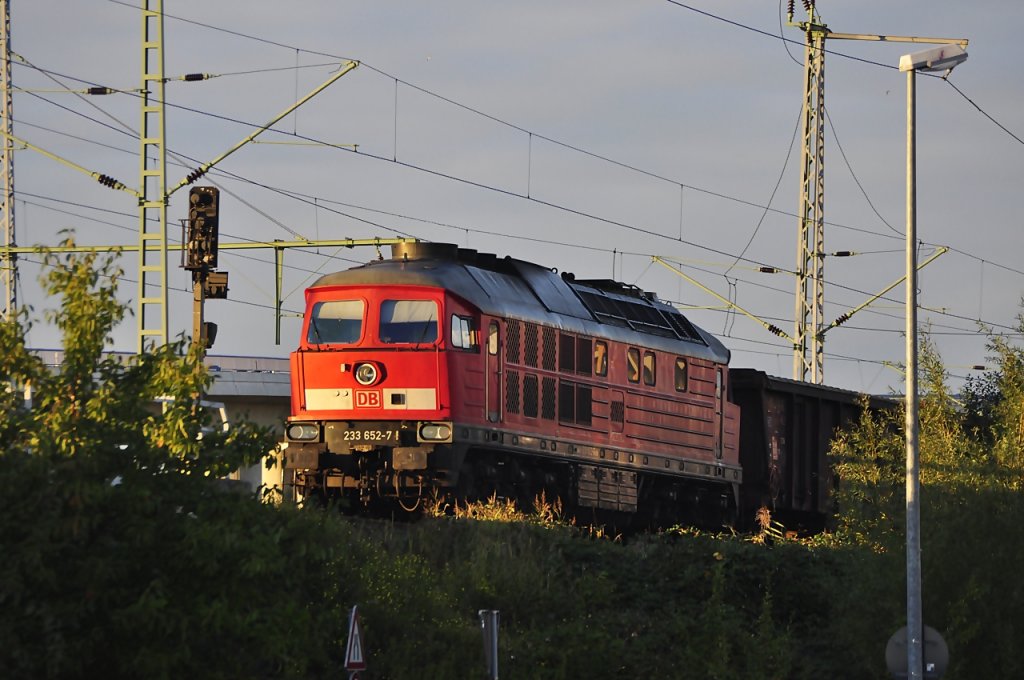 am Abend des 29.09.2010 wartet 233 652 im Bf Stralsund-Rügendamm mit ihrem Ea-Wagenzug auf die Dinge die da kommen