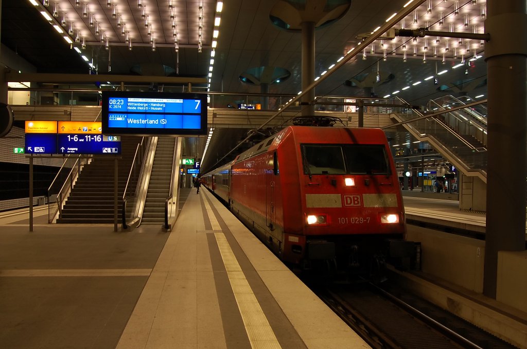 101 029-7 mit dem IC 2074 nach Westerland(Sylt) in Berlin Hbf (tief). 16.10.2010