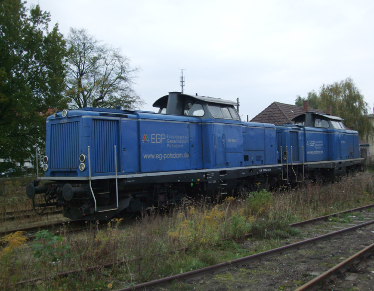 212 054-1+212 272-9 von der Firma Eisenbahngesellschaft Potsdam(EG)standen am 17.10.10 um 09.20 Uhr abgestellt im Bahnhof Pritzwalk.