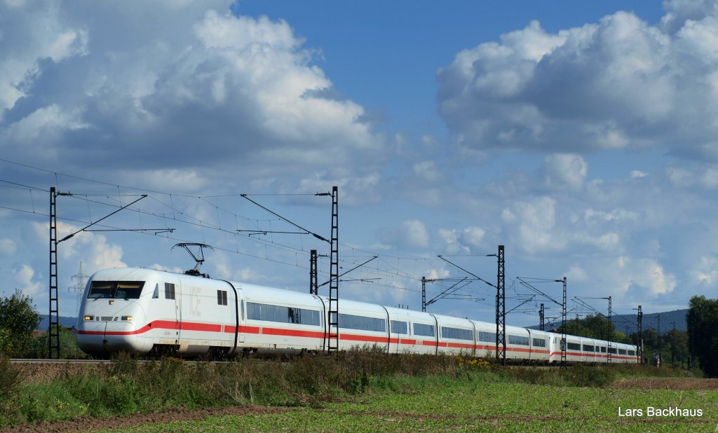 Die 120 die den IC nach Nürnberg schiebt, fährt gerade aus dem Freiburger HBF aus.