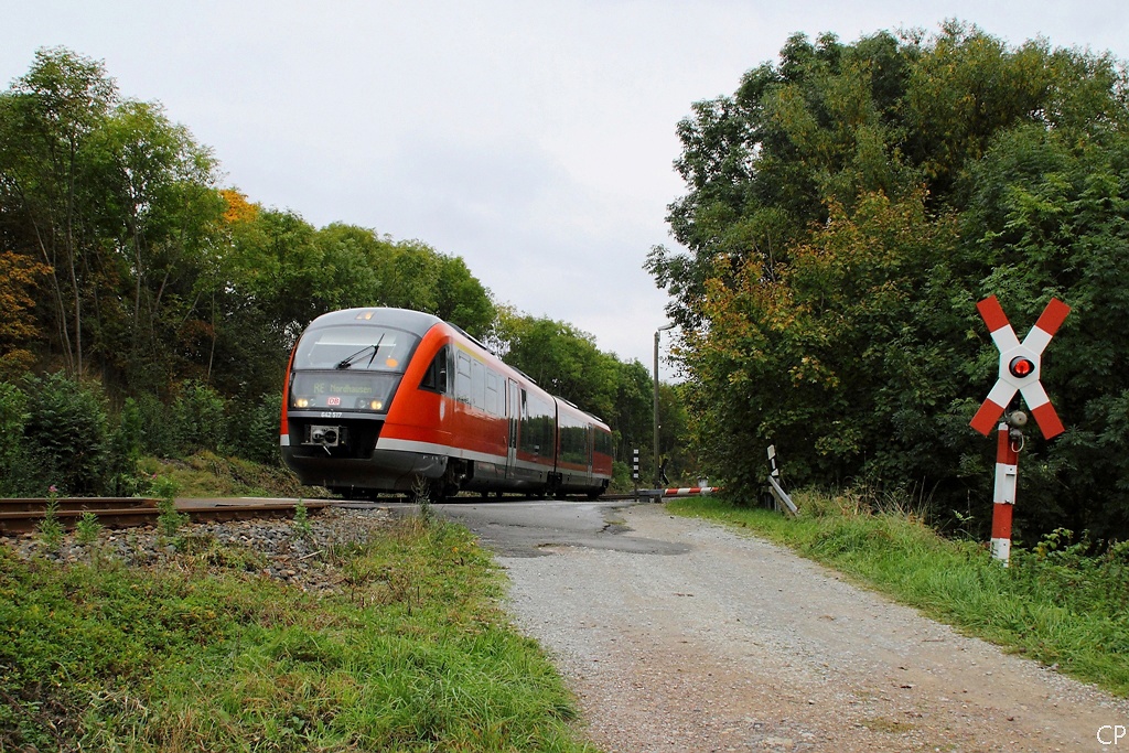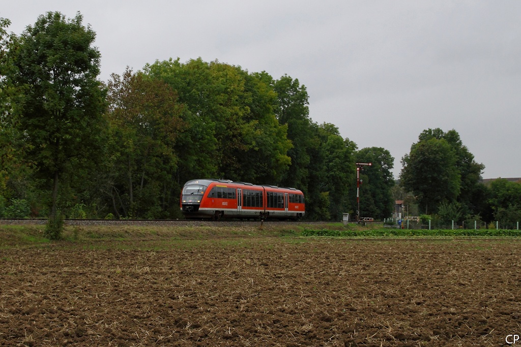 Auf dem Weg nach Erfurt fährt 642 063 am Einfahrsignal des Bahnhofs Wasserthaleben vorbei. (2.10.2010)