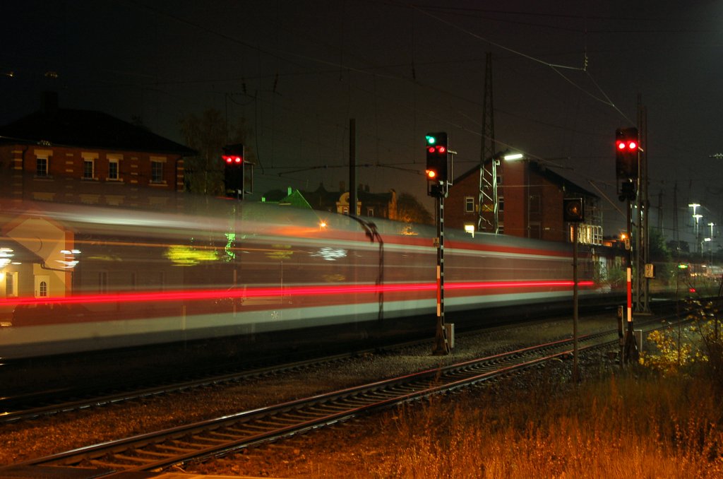 Die 101 110 verlässt am Abend des 07.08.2010 den Bahnhof Nürnberg mit ihrem IC.