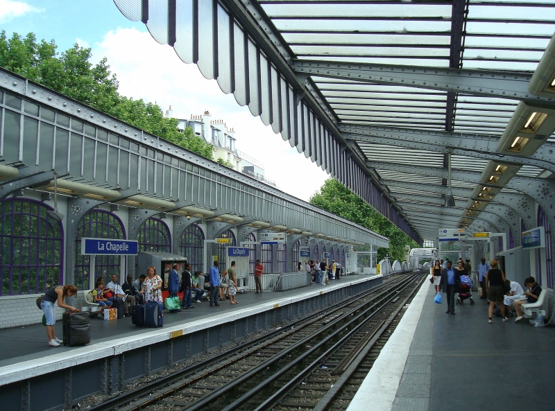 Noch weiter östlich auf der Linie 2: Die Station La Chapelle, mit wunderschöner Glasüberdachung aus der Zeit um 1900. 13.7.2009