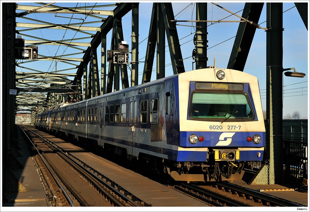 S9 (Gänserndorf-Mödling); hier auf der S-Bahn-Brücke in Wien/Handelskai, 21.2.2010.