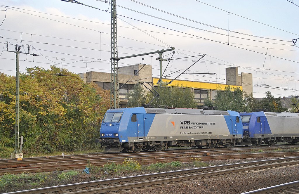 VPS 185 530 zieht zusammen mit 185 590, einen lerren Errzug durch Lehrte, am 10.12.10