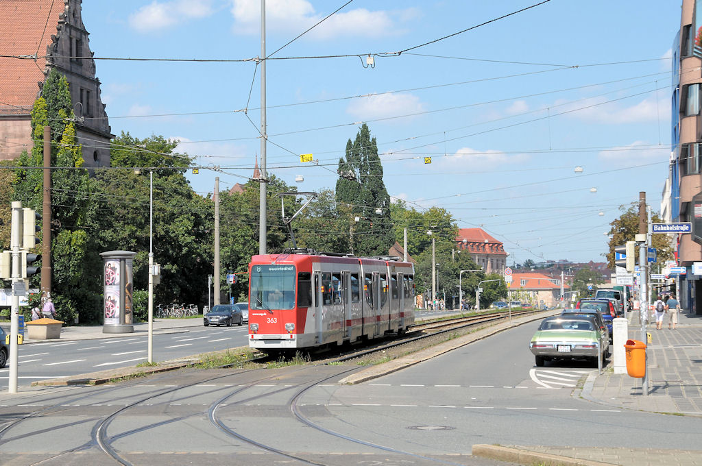 Leipzig: Straßenbahnlinie 4E nach Reudnitz Riebeckstraße/Stötteritzer Straße am Hauptbahnhof.(25.8.2010)