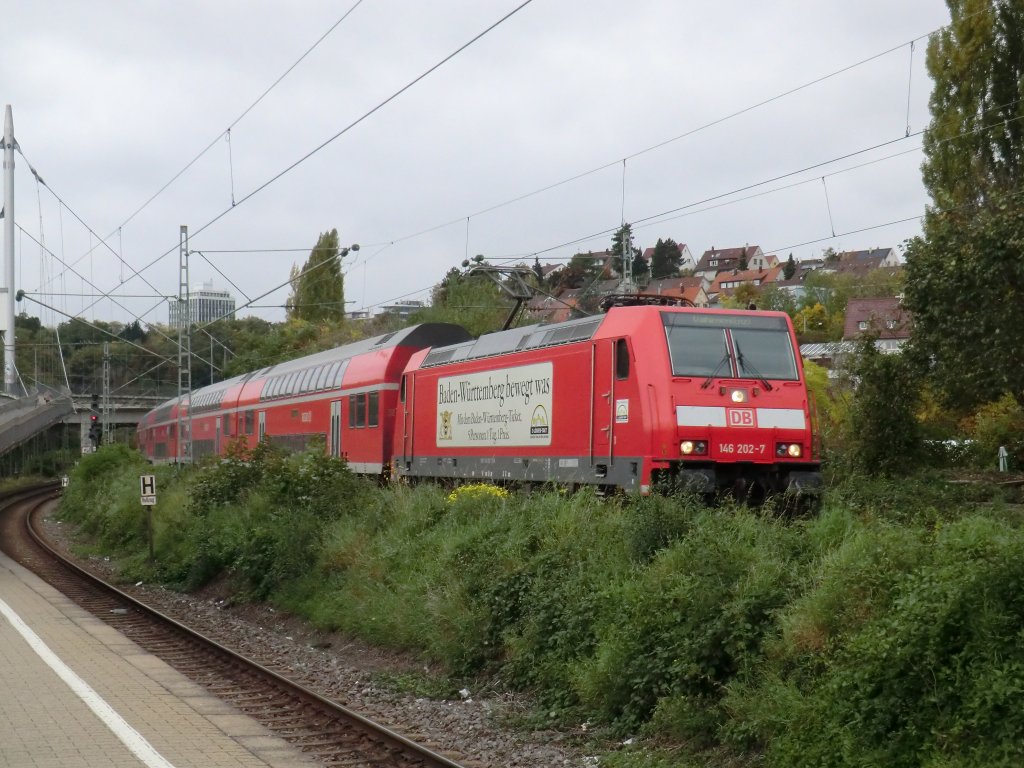 146-202 zog den IRE 4909 von Karlsruhe Hbf nach Stuttgart Hbf (Stuttgart Nord, 19. Oktober 2010)