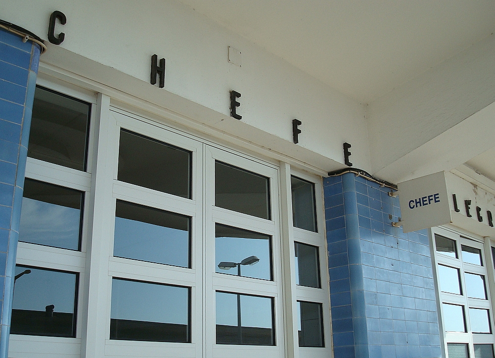 Bhf. Vila Real de Santo Antonio, Schriftzug auf der Gleisseite: das Büro des Bahnhofsvorstehers. 18.09.2008