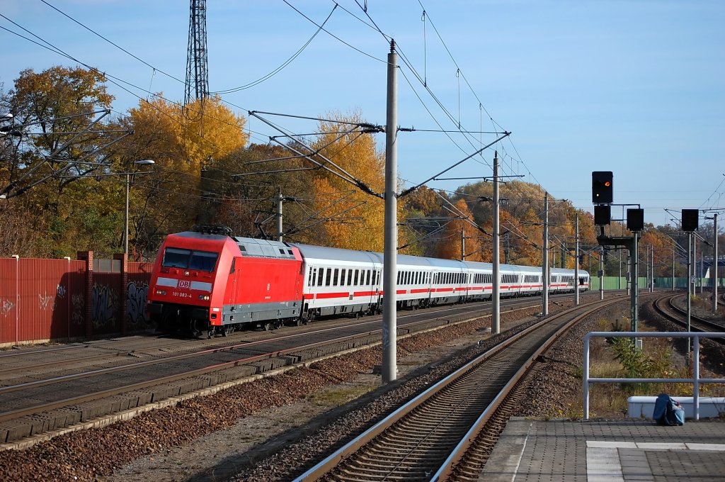 101 083-4 mit dem IC 146 nach Schiphol (Airport) in Rathenow. 30.10.2010