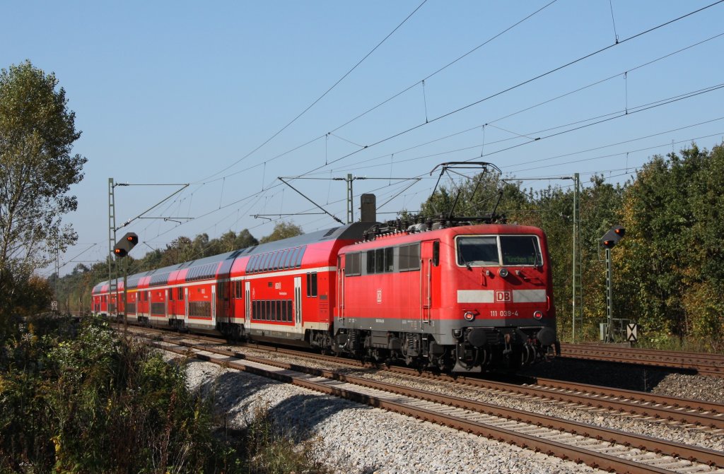 Der R 6837 wurde am 29.10.2010 von der 1099 008 bespannt. Dieses Bild zeigt den Zug kurz vor dem Bahnhof Loich.
