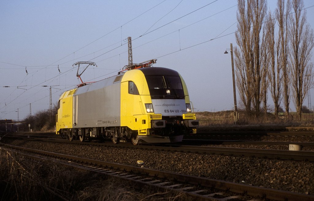 ES 64 U2 - 024 mit einem Containerzug auf der Franz-Josefs Bahn zwischen Klosterneuburg und Kritzendorf. 07.10.10