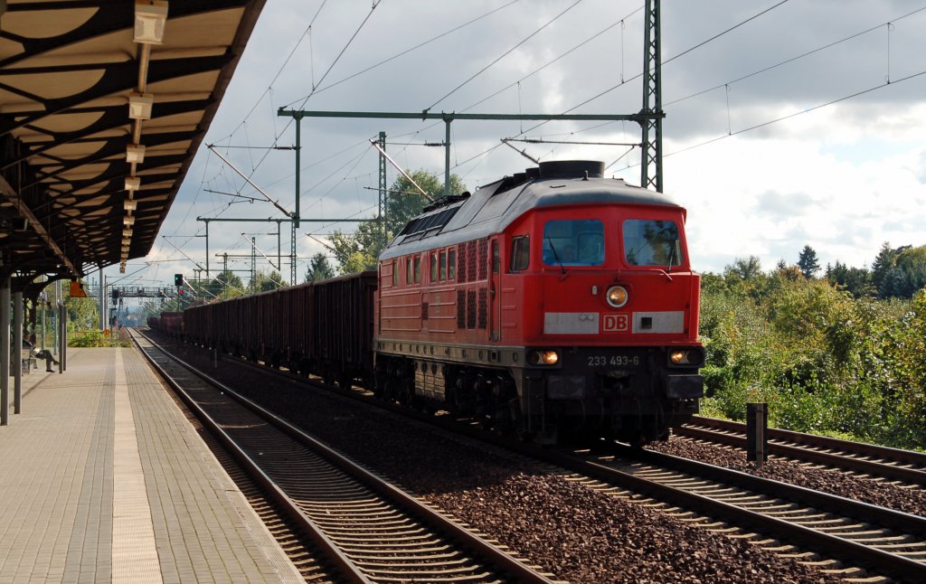233 493 zieht am 30.09.10 einen Güterzug vorbei am S-Bahnhof Dresden-Strehlen Richtung Rbf Dresden-Friedrichstadt.