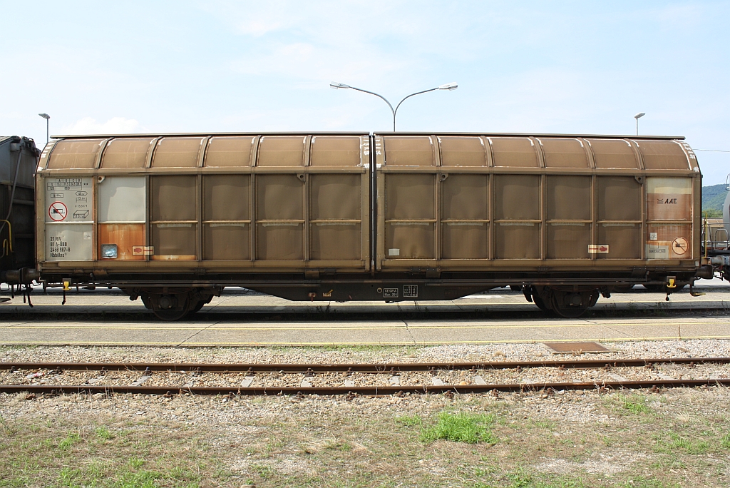 Die 185 310 am 31.07.2010 mit einem KLV-Zug bei der Durchfahrt in Wernstein.