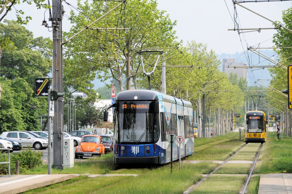 Dresden: Straßenbahnlinie 12 nach Leutewitz an der Haltestelle Pirnaischer Platz.(18.8.2010)