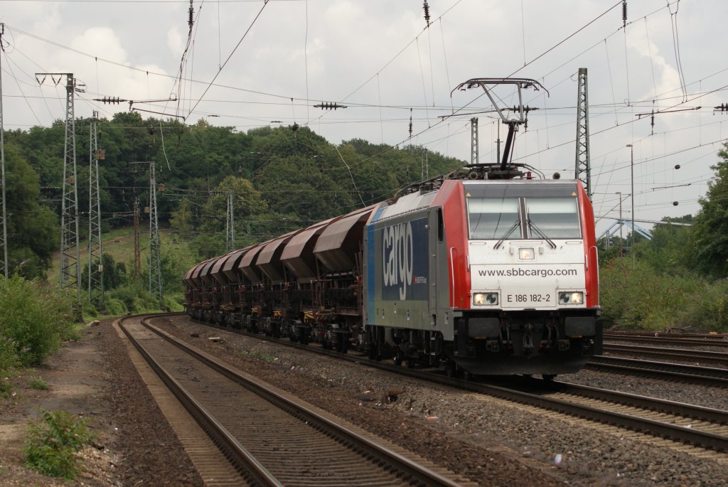 186 182-2 mit einem Schotterzug in Köln West am 27.07.2010