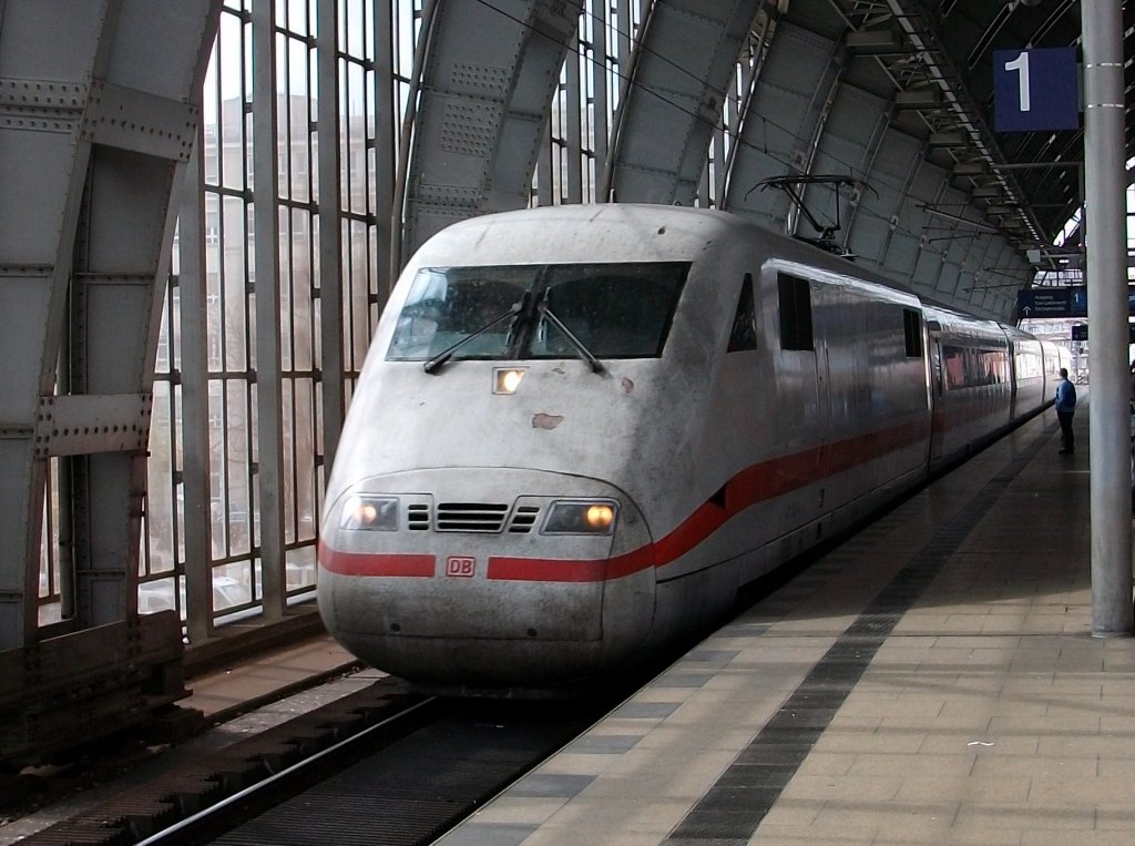 ICE 401 086 am 01.Mai 2010 bei der Durchfahrt durch den Bahnhof Berlin Alexanderplatz.