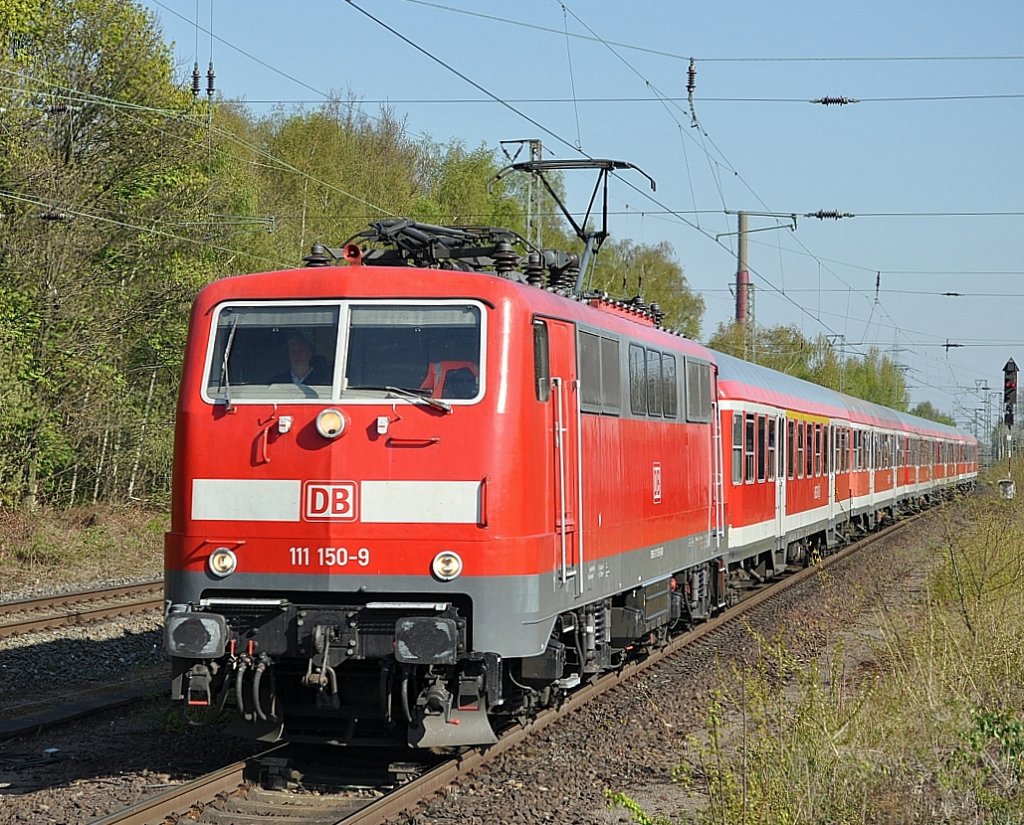 Die Trierer 111 121 durcheilt am 06. September 2010 die beschauliche Gemeinde Böhl-Iggelheim auf dem Weg von Trier nach Mannheim.