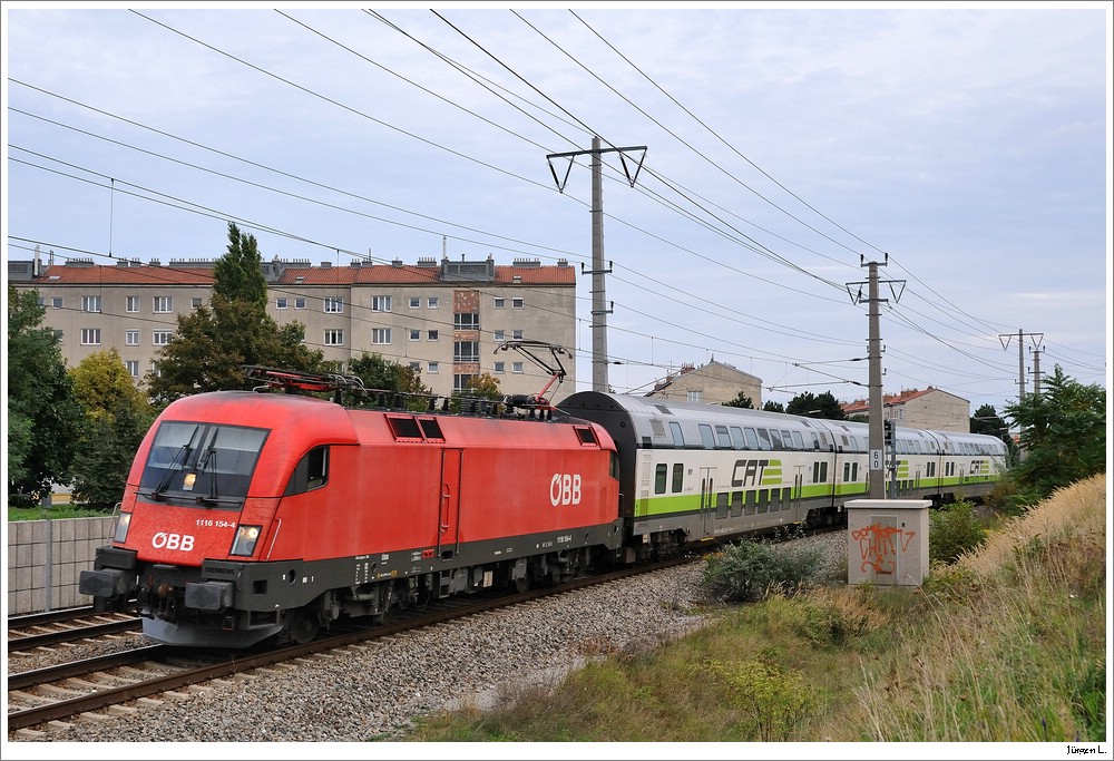 1116.154 mit dem 17:35h-Zug Richtung Wien/Mitte; Nahe Hst. Zentralfriedhof, 18.9.2010.