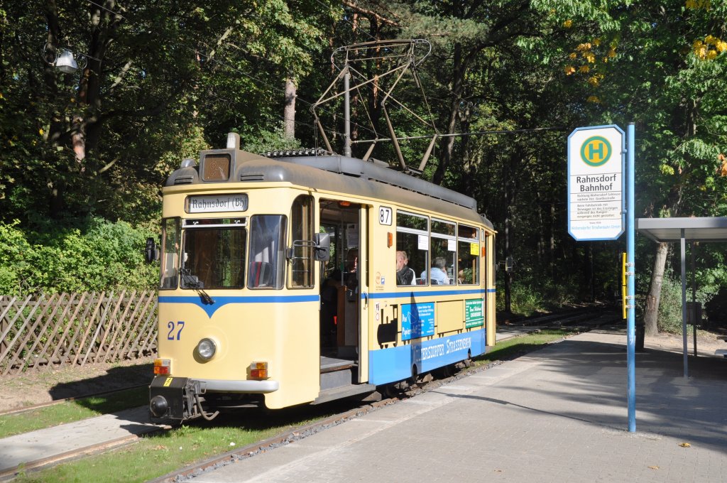 BERLIN, 22.09.2010, Straßenbahnlinie 87 an der Endhaltestelle S-Bahnhof Rahnsdorf (S-Bahnlinie S3)