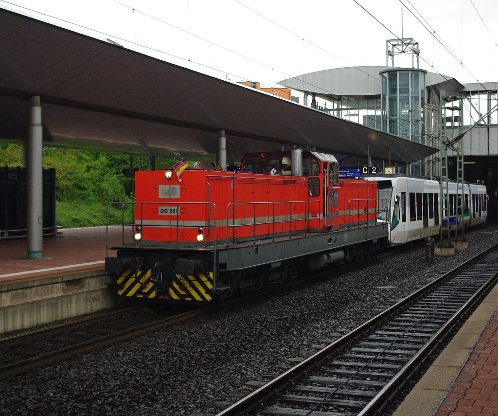 Das schlechte Wetter (es war der einzige Regentag im Urlaub) und die Aussicht auf wenig besonderes (das meiste kam uns unterwegs immer entgegen ;) veranlassten uns zur Rückfahrt von Geißen nach Kassel Wilhelmshöhe. Dort schleppte gerade DG 201 einen RegioTram-Zug ab. Aufgenommen am 22.07.2010.