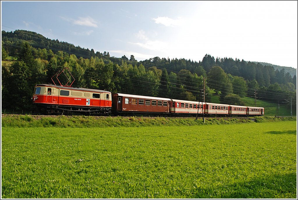 Am 27.August 2010 hatte die 1099 011 endlich ihre große Probefahrt, nach ihrem langen Werkstattaufenthalt. Hier der Zug beim Aufenthalt in Gösing.