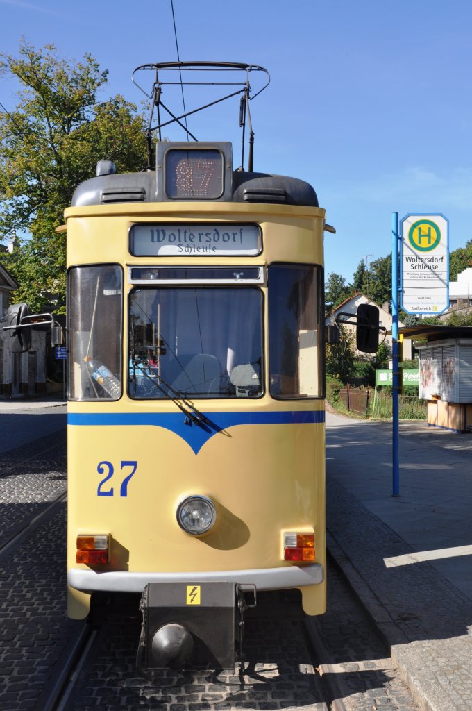 WOLTERSDORF (Landkreis Oder-Spree), 22.09.2010, Straßenbahnlinie 87 an der Endhaltestelle Woltersdorf, Schleuse