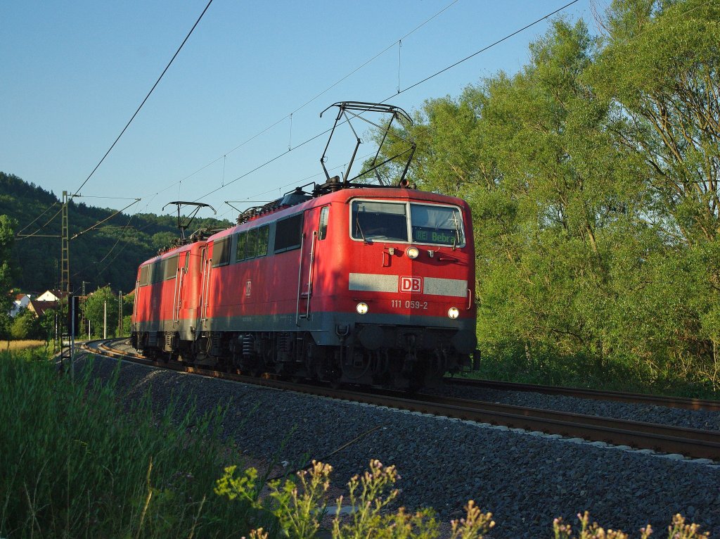 110 494-2 am 3.9.10 mit Nahverkehrwagen auf dem Weg nach Aachen bei Übach - Palenberg ( Bahnübergang Rimburg ).