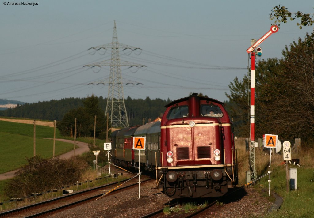 52 8195 mit einem Sonderzug aus Nürnbeg am 22.5.2010 anlässlich 175 Jahre Deutsche Bahn auf dem Weg zum Schnellzug-Dampflok-Treffen in Neuenmarkt-Wirsberg bei der Durchfahrt in Ludwigschorgast.