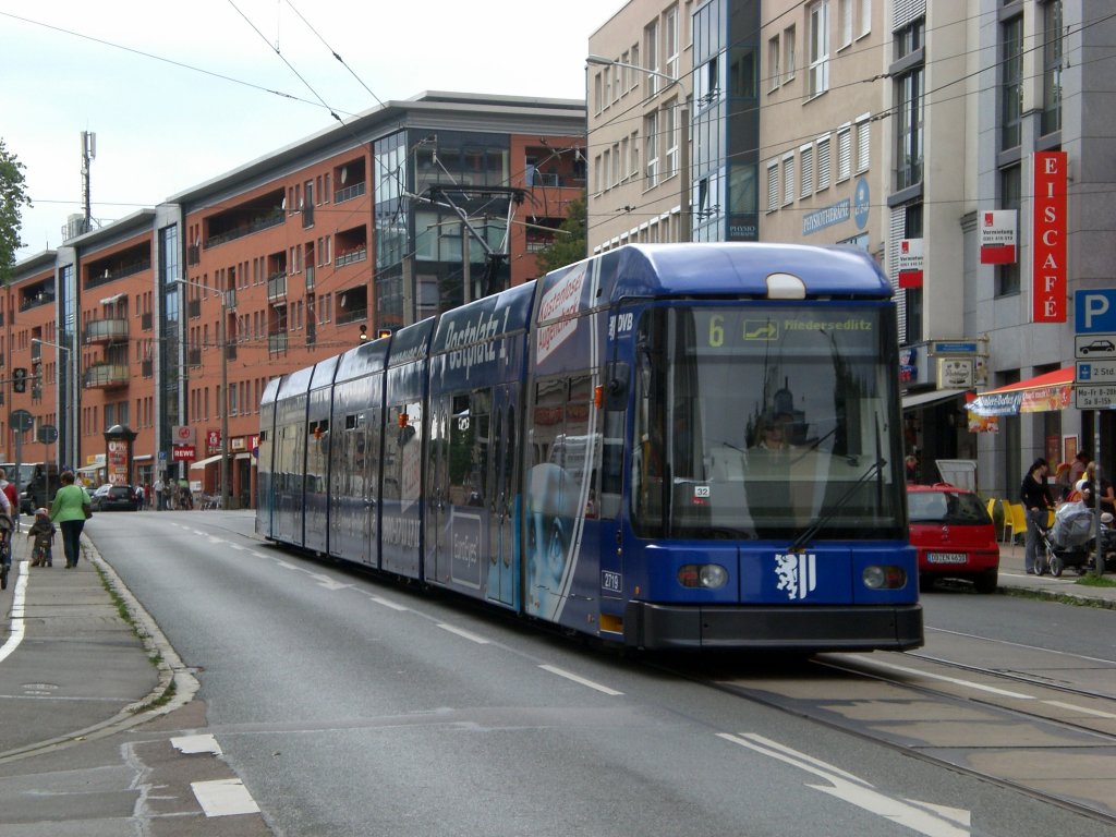 Dresden: Straßenbahnlinie 6 nach S-Bahnhof Niedersedlitz an der Haltestelle Löbtau Tharandter Straße.(18.8.2010)