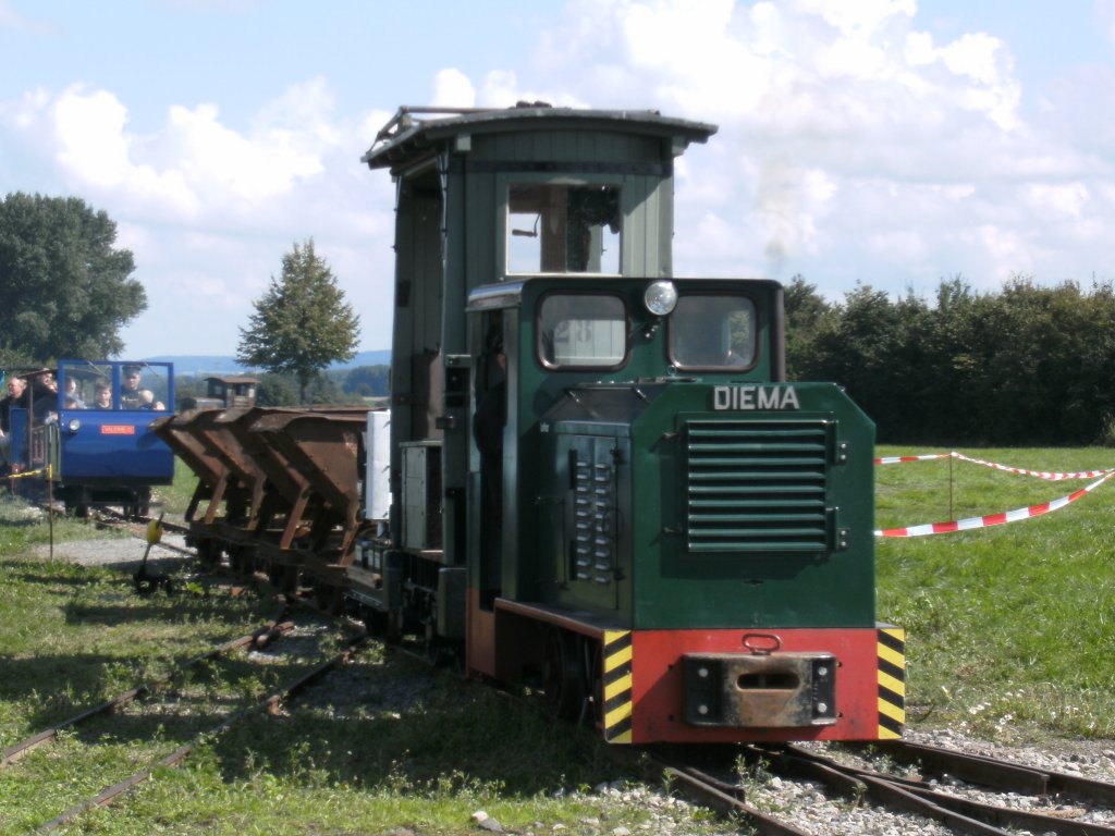 Parade der Feldbahnen im LWL-Ziegeleimuseum Lage (Lippe) am 05. Septembet 2010 - Diema Feldbahn mit einer elektriechen Feldbahn. Aufgund der fehlenden Oberleitung im Ziegeleimuseum ist diese Lok mit einer selbstgebauten Stromversorgung ausgestattet.