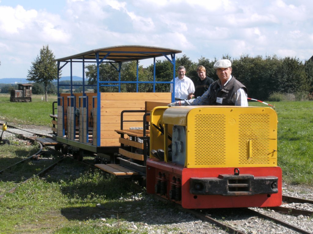 Parade der Feldbahnen im LWL-Ziegeleimuseum Lage (Lippe) am 05. Septembet 2010 - Übermotorisierte Fuhre (oder waren die Passagiere zu schwer?)