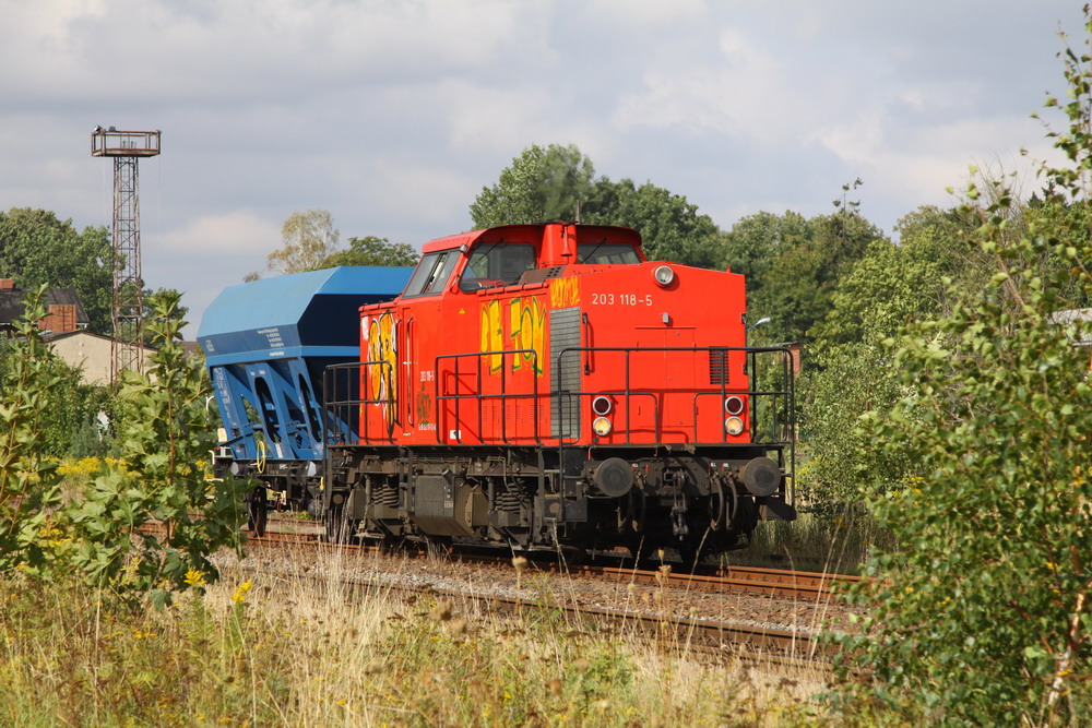 203 118 kommt mit einem Schüttgutwagen durch Grevesmühlen gefahren. 07.09.2010