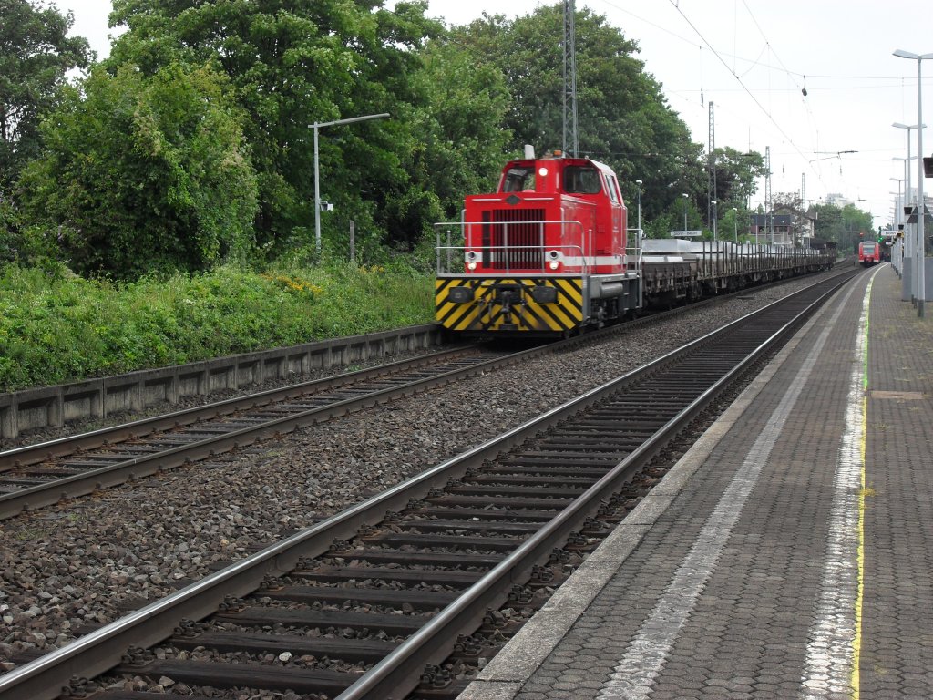 Eh 868 rangiert Schüttgutwagen im Edelstahlwerk und muß dabei über die Anrather Straße hinaus ziehen. 8.9.2010